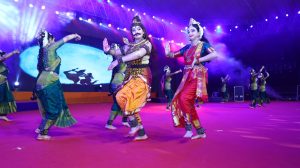 इसके बाद कुचिपुड़ी नृत्यांगना सुश्री दीपिका रेड्डी ने अपने भावपूर्ण नृत्य से पंडाल में भारतीय संस्कृति की छवि प्रस्तुत की। उन्होंने शिव और पार्वती के विवाह, गंगा अवतरण, और भागीरथी प्रसंग जैसे पौराणिक प्रसंगों को जीवंत कर दिया।