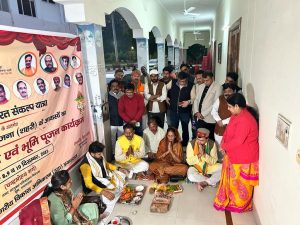 प्रयागराज 10 दिसंबर। गरीबों और वंचितों को अपना घर मुहैया कराने के लिए प्रदेश सरकार 08 से 10 दिसम्बर के बीच 5026 पीएम आवासों का भूमि पूजन किया जा रहा है। आज दिनांक 10/12/2023 को ‘विकसित भारत संकल्प यात्रा’ के अन्तर्गत भूमि पूजन एवं स्वीकृति पत्र वितरण का कार्यक्रम मुख्य अतिथि महोदया माँ० सांसद फूलपुर श्री मती केसरी देवी पटेल जी एवं माँ० विधायक श्री हर्ष वर्धन वाजपेयी जी एवं माँ० महापौर श्री गणेश चंद्र उमेश चंद्र केसरवानी जी की गरिमामयी उपस्थिति में सभागार,सर्किट हाउस, प्रयागराज में किया गया। कार्यक्रम में अतिथि महोदय द्वारा लाभार्थियों को संबोधित करते हुए बताया गया कि पीएम आवास योजना (शहरी) लाभार्थियों को निशुल्क में घर दिया जा रहा है।