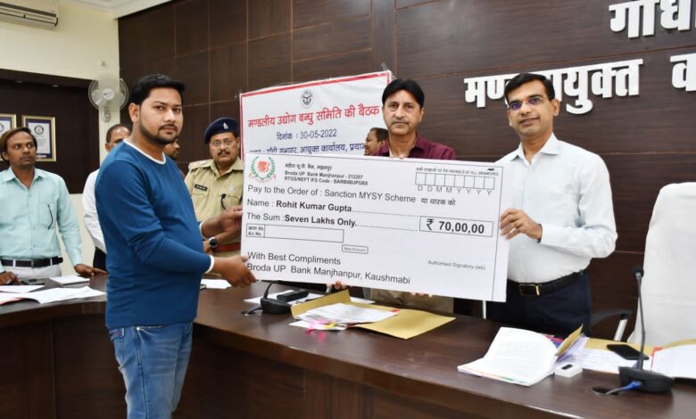 बैठक के पूर्व मण्डलायुक्त के द्वारा मण्डल के जनपदों से आयें हुए विभिन्न योजनाओं के लाभार्थिंयों को 457 लाख रू0 का ऋण पत्र एवं टूलकिट का वितरण भी किया गया। जनपद प्रयागराज के प्रधानमंत्री रोजगार सृजन कार्यक्रम, मुख्यमंत्री युवा स्वरोजगारा योजना एवं एक जनपद एक उत्पाद योजना के कुल 13 लाभार्थिंयों को, जनपद फतेहपुर के प्रधानमंत्री रोजगार सृजन कार्यक्रम, मुख्यमंत्री युवा स्वरोजगार योजना, विश्वकर्मा श्रम सम्मान योजना के कुल 5 लाभार्थिंयों को, जनपद कौशाम्बी के कुल 4 लाभार्थिंयों को तथा जनपद प्रतापगढ़ के प्रधानमंत्री रोजगार सृजन कार्यक्रम योजना, मुख्यमंत्री युवा स्वरोजगार योजना तथा विश्वकर्मा श्रम सम्मान योजना के तहत कुल 4 लाभार्थिंयों को ऋण स्वीकृत पत्र वितरित किया गया।