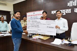 इसके साथ ही साथ विश्वकर्मा श्रम सम्मान योजना के तहत लाभार्थिंयों को टूलकिट का वितरण किया गया। इस अवसर पर संयुक्त आयुक्त उद्योग श्री सुधांशु तिवारी, श्री मुरारी लाल अग्रवाल, श्री संतोष त्रिपाठी तथा उद्यमी श्री जीएस दरबारी सहित अन्य उद्यमीगण एवं सम्बंधित विभागों के अधिकारीगण उपस्थित रहे।